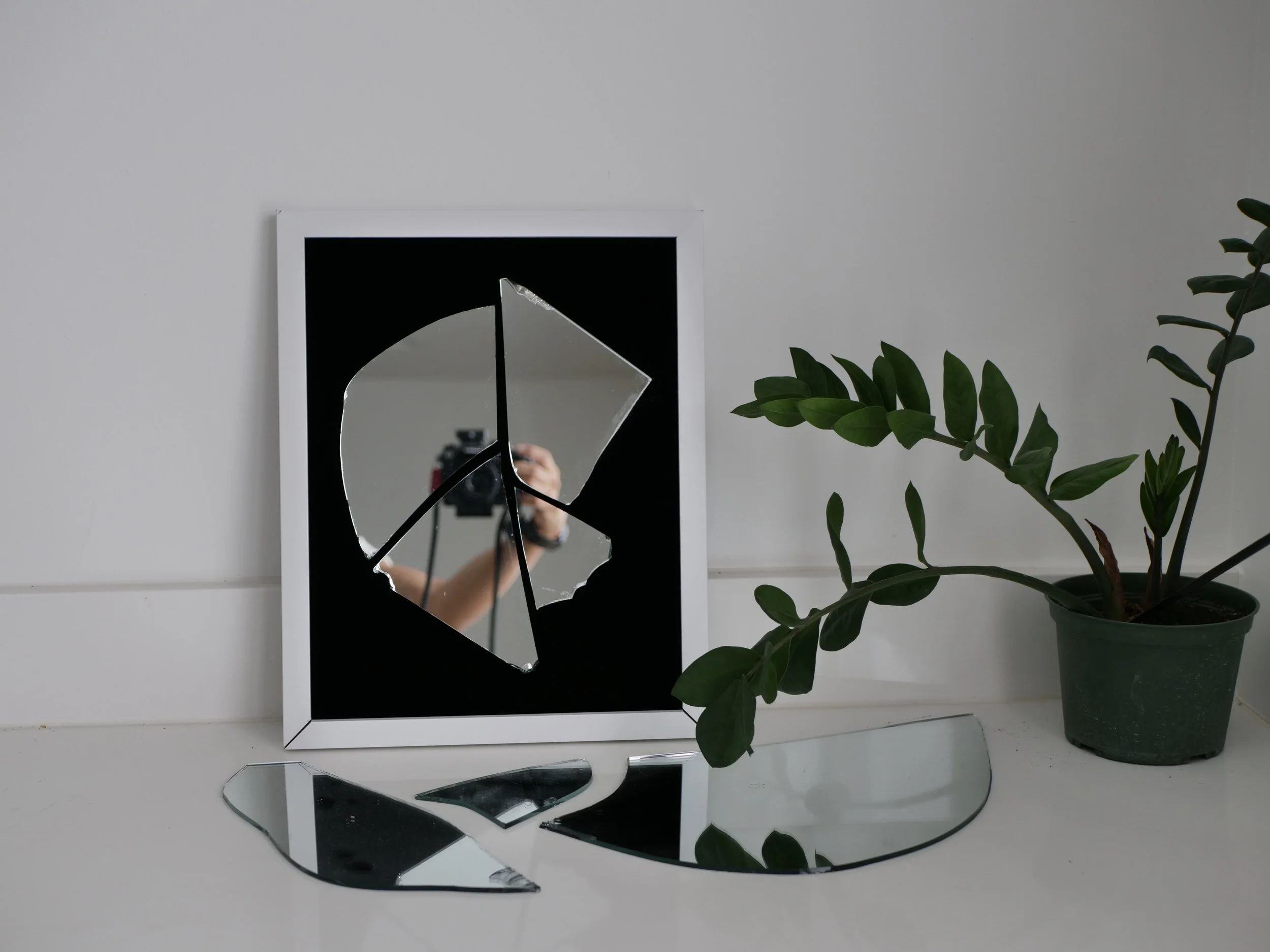 it's not perfect & it's not the reflection I expected. Its broken but shaped mirrors attached to a Japanese fabric (closest thing to mimic VantaBlack), to represent wabi sabi and kintsugi combined. Embracing the imperfections yet piecing together light from mirrors with darkness.